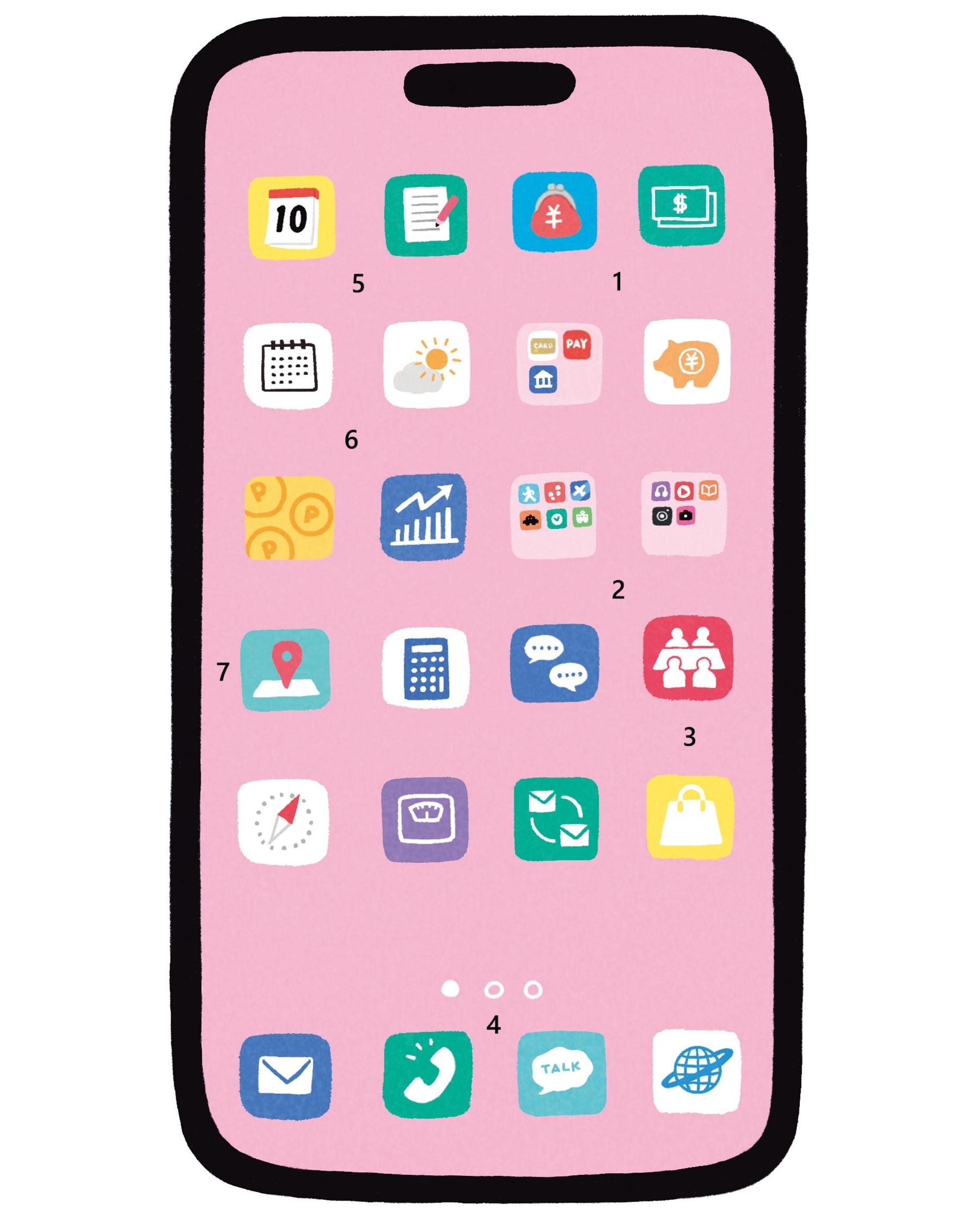 各番号の位置に配置するアプリの詳しい内容は下記をチェック!