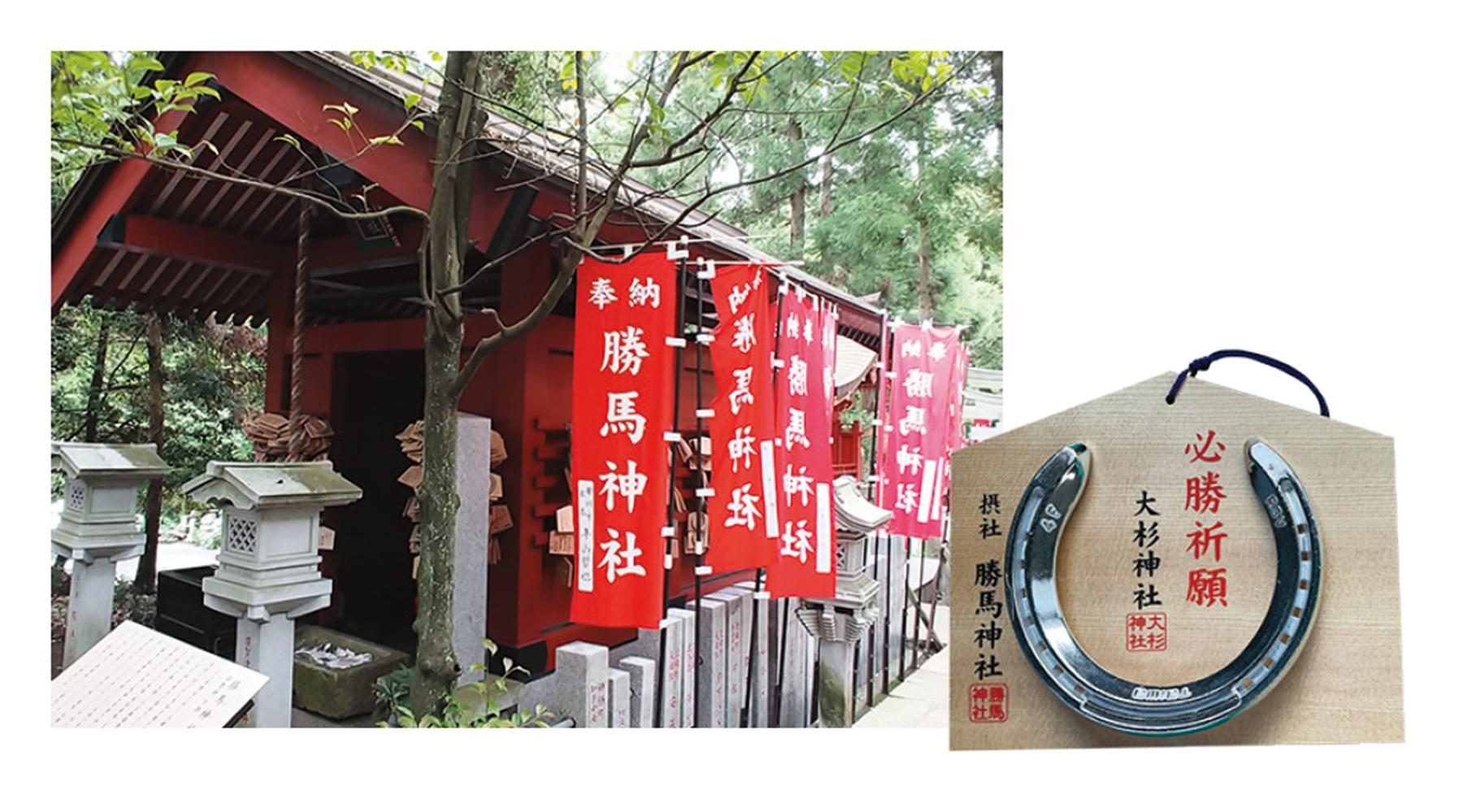 競馬にゆかりのある神社 昭和初期まで境内で競馬が開催されるなど馬との縁が深い。「本物の馬蹄が付いた『馬蹄絵馬』(3000円)は、願掛けにご利益がありそう。サラブレッドのたてがみを用いた『立神御守』なども人気」茨城県稲敷市阿波958 TEL. 029-894-2613