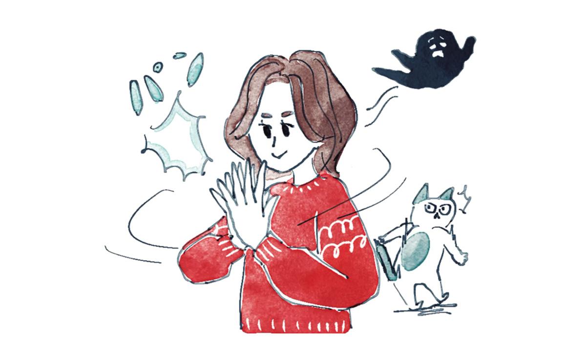 自宅やオフィス、宿泊先など空間の邪気払いには、手を叩くのが有効。「音で波動が広がることで不浄なものが吹き飛びます。リーンと高く響く鈴の音も同様の効果があります」