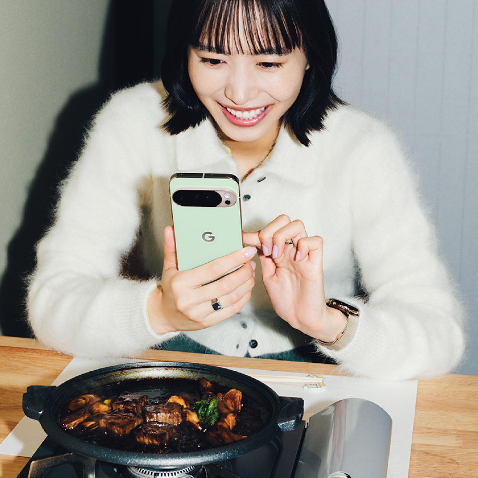 旅にはいつも愛用のフィルムカメラもバッグに入れて持っていきますが、色や光を自動調整してくれるGoogle Pixelのカメラのほうが、実はいい写真を撮れることも多くて。星空だってキレイに写せるんです。お料理の場合は、ぐつぐつと煮立っている鍋の躍動感や繊細な湯気まで逃さずに撮れるし、自然の中で動物や花を見つけたらマクロ フォーカスで近接もできる。Google Pixelがあれば旅のレベルがグッと上がるのを感じられて、思い出もより特別なものになるんですよね」