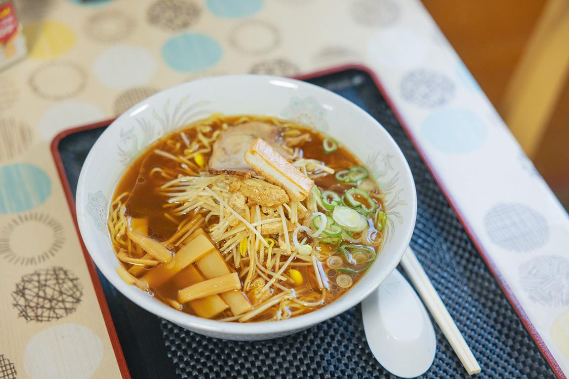 駅のすぐ隣に店を構えるこちらは、名物「大鰐温泉もやし」を使ったメニューが人気。イチオシは、津軽定番の煮干し風味のスープをベースにした醤油ラーメンで、炒めた温泉もやしをのせた「元祖おおわに温泉もやしラーメン」。一般的なもやしより細いのに、驚くほどのシャキシャキさ! 町内では他にももやしラーメンを出すお店があるそうですが、現在食堂を営む姉妹によると、「最初に作ったのは4代目の母なのよ」とのこと。一度食べたら忘れられない味。南津軽郡大鰐町大字大鰐字前田34-21/TEL. 0172-48-2134/曜日によって異なる/不定休