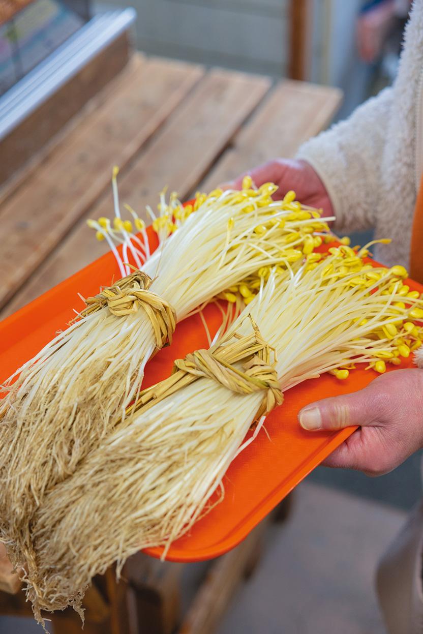 日帰り湯とお食事処などがある大鰐町地域交流センター・鰐come。その売店「メルカート」は、地元の特産品や工芸品、産直の野菜や果物、お惣菜などが並ぶ。注目は、温泉の熱で栽培される大鰐温泉もやし。歯ざわり、味わい、サイズ感、すべてが普通のもやしとは別次元。手間暇かかる上に作る農家の数も少ないため常に店頭にあるわけではなく、町の方々も「あったらラッキー」という幻の野菜。見かけたら、おみやげにぜひ! 南津軽郡大鰐町大字大鰐字川辺11-11/TEL. 0172-49-1126/8:00〜17:00(冬期間限定短縮営業中〜16:00)/第3木曜休