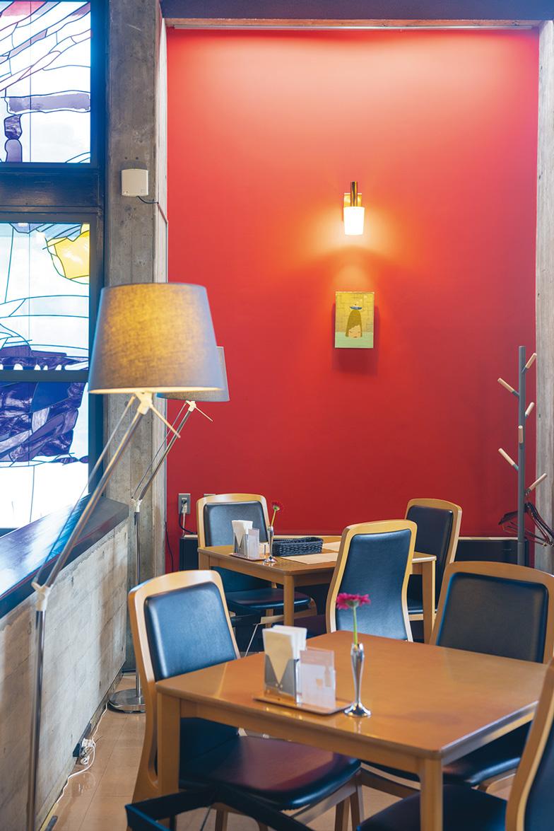 コルビュジエの弟子だった建築家・前川國男氏が1964年に建てた弘前市民会館。ステンドグラスが印象的な建物の2階、吹き抜けの中に浮かぶように存在しているのが、こちらの喫茶店。別の場所で営業していたのが、2014年、市民会館のリニューアル時にこちらに移転。星空をイメージした天井や、ステンドグラスを眺めながらこだわりのコーヒーや軽食が楽しめる。建物自体も魅力的なので、そちらもぜひ。弘前市下白銀町1-6 弘前市民会館管理棟 M2F/TEL. 0172-88-8928/11:00〜17:00(16:00LO)/第1・3月曜(祝日の場合は翌日)休