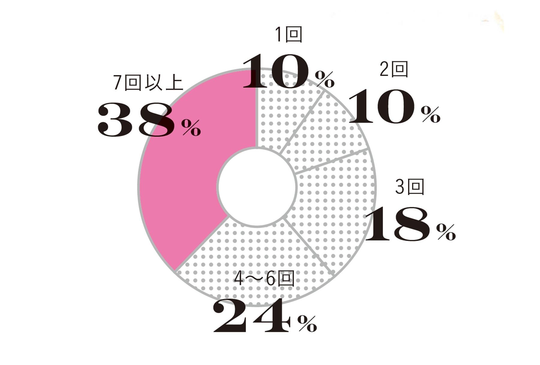 1回…10%、2回…10%、3回…18%、4~6回…24%、7回以上…38%