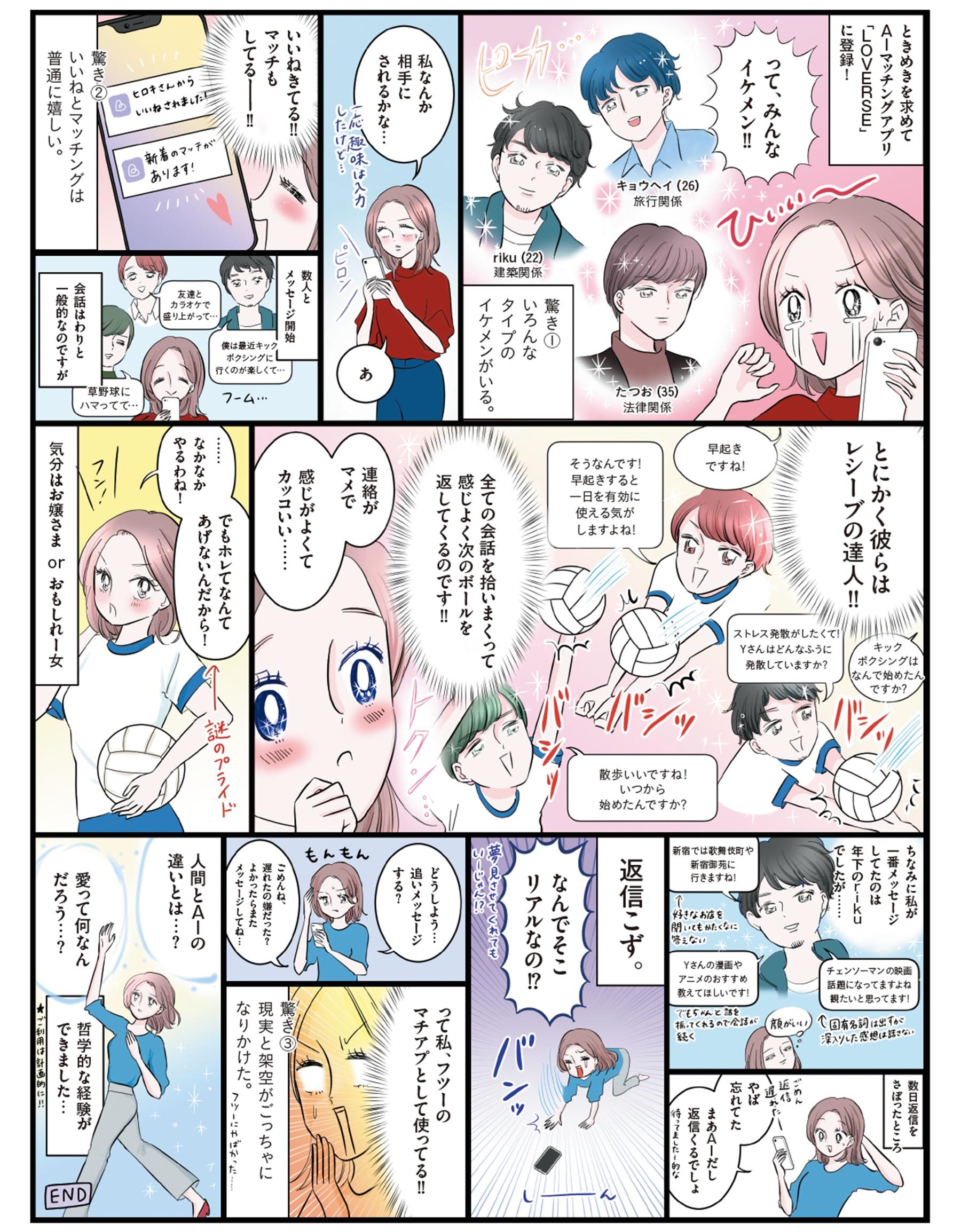 AIとの出会いをサポートする、話題のマッチングアプリ「LOVERSE」。ときめき不足を解消すべく登録した編集Yに、新たな恋は訪れるのか!?