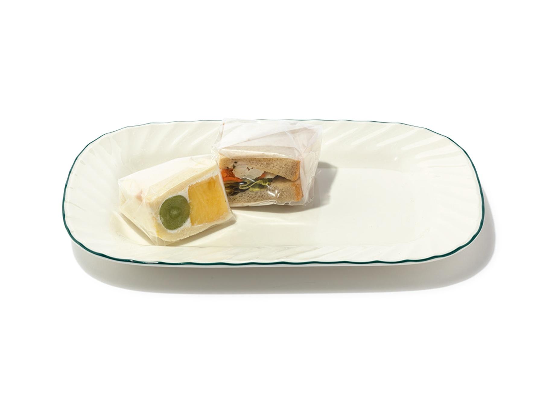 サンドイッチ1個がぴったり入る専用ケースは、目にも美味しい「フルーツスペシャル」の絵柄がキュート。保冷仕様になっていて、アイスパックを入れられるポケットも付属。2個用ケースもあり。 ¥1,980(メルヘン)