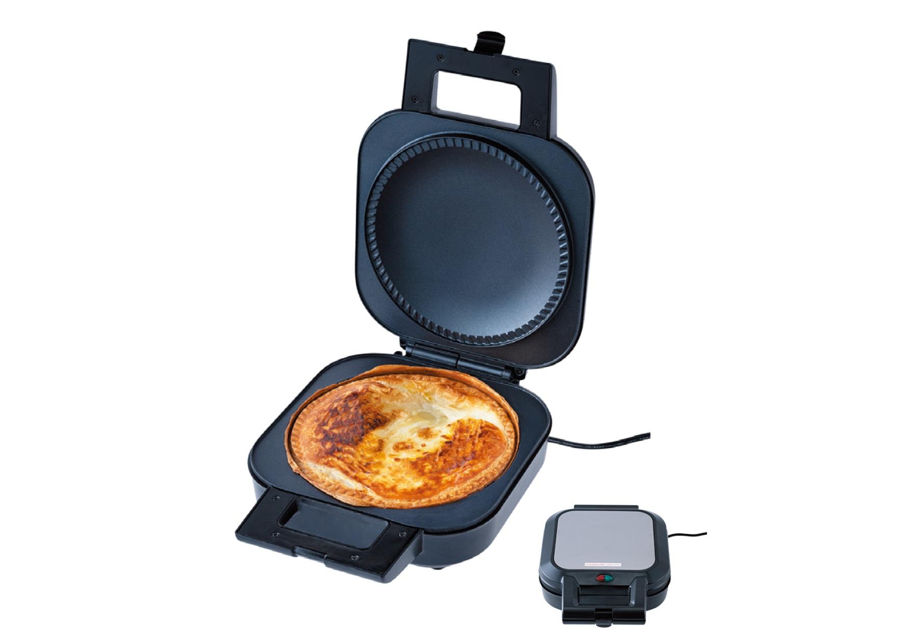 冷凍パイシートをセットし、中におかずやレトルト食品などお好みの具材を入れて焼くだけでパイ料理が完成。ジャムを入れればデザートパイに。「レトルト食品や残りものを入れるだけで、某ファストフード店顔負けの豪華パイが完成します。僕はこれの小さいタイプを愛用していますが、大勢で集まったときに盛り上がるのは本格派の大きいサイズ。あんことバターなど甘いものを入れる食べ方がお気に入りです」。 ¥6,280(サンコー通販部)