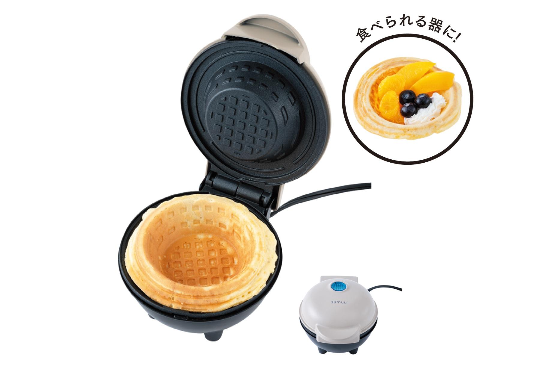 器までまるごと食べられるカップデザートを手軽に作ることができる。完成した器にフルーツや生クリームなどの具材をトッピングすれば、華やかなパーティフードに。「ワッフル生地でも美味しいですが、ご飯や麺でボウルを作っておかずを入れれば、食事系メニューにも応用できます。焼きラーメンなど、冒険心あふれる組み合わせに挑戦すれば、ホームパーティが盛り上がりそう」。 ¥3,058(マクロス)
