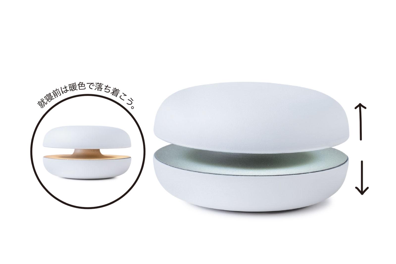 深呼吸を自然に促し、習慣化するための卓上デバイス。ゆっくりとした上下の動きと穏やかなサウンド、2色から選べるライトによって、深い呼吸へと導く。就寝前にゆるやかな動きに合わせて呼吸を整えることで、入眠をサポート。そのほかストレス軽減、集中力持続にも効果が。インテリアになじむオブジェのようなデザインもポイント。 ¥33,000(シンコキュウ)