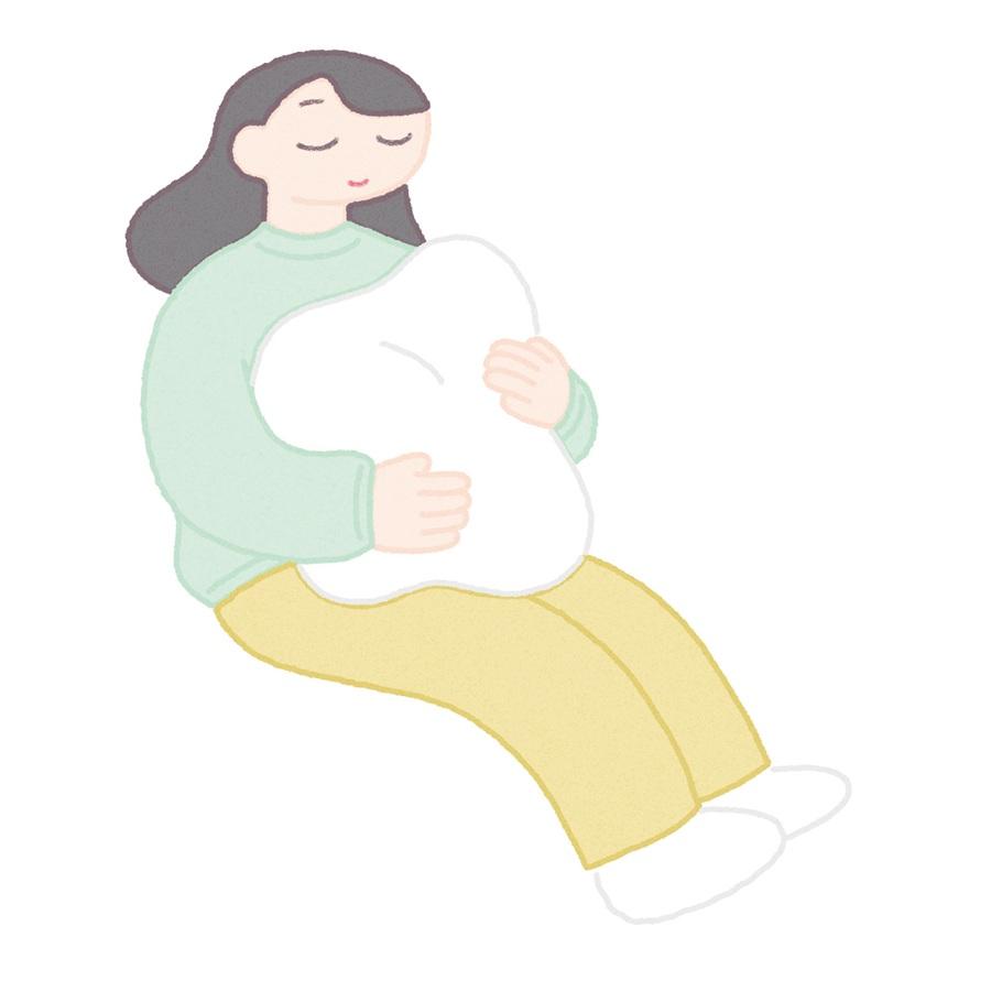 抱えることで深い呼吸を促す抱き枕感覚のクッション