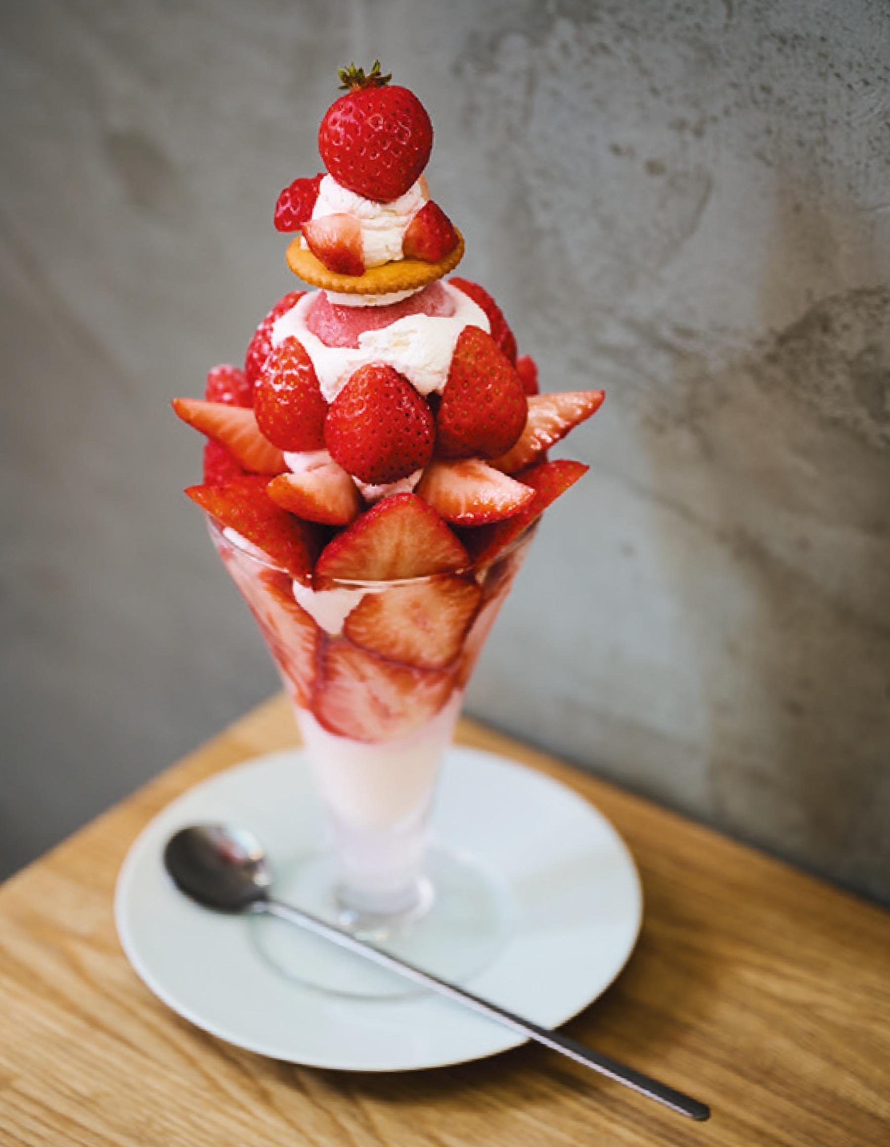 甘みと酸味のバランスのよさと濃厚な味わいで人気の福岡のブランドいちご・あまおう。糸島市にあるあまおう農園が手がけるカフェは、パフェをはじめ、タルトやミルフィーユといったケーキ類のほか、スムージーやカクテルなど、いちごを使ったあらゆるメニューが揃う。人気の「TANNALあまおうパフェ~リバイバル~」は、大きいほど甘みの増すあまおうをサイズ違いで3種使い、上から下まであまおうづくし。旬はまさに今。夜遅くまで営業しているので夜パフェもぜひ。
