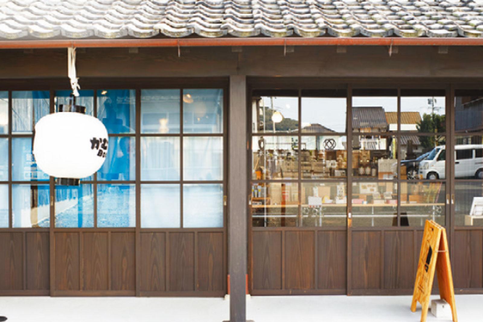浜崎地区の古い建物を活かしたお店は、その名の通り書店と美容室、さらに雑貨のお買い物やコーヒーも楽しめる。入り口の引き戸を開けると全国から集められた“ローカルな良品”がズラリ。