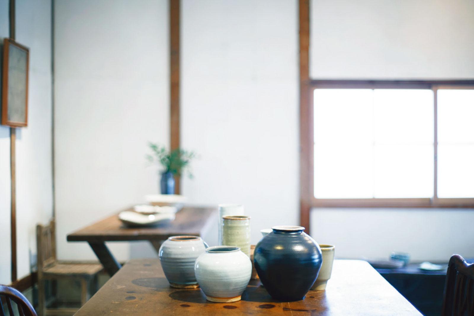 ギャラリーの1階には、大屋窯の職人が作る使いやすいデザインの器が、2階には2代目である濱中史朗さんの現代的でシックな作品が並ぶ。高台の上には展示場兼作家の自宅の素敵な家屋があり、その奥には幻想的な庭が広がる、魅力的な空間が。器を選んだり、美しい庭を愛でたりと、豊かな時間が過ごせるスポット。
