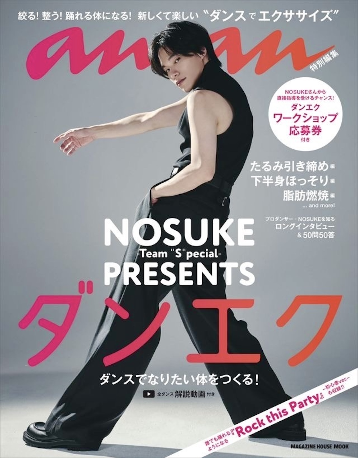 2025年9月にマガジンハウス博で行われた“ダンエクワークショップ” 。定員の約8倍の応募が集まり、高い満足度を得た大人気ワークショップがMOOK発売記念に再度開催決定! MOOK購入者なら誰でも応募可能、当選すれば無料で参加できる豪華付録です。ダンサー・振付師 NOSUKEさんから直接指導を受け、ダンスを踊れるようになる千載一遇のチャンスをお見逃しなく。