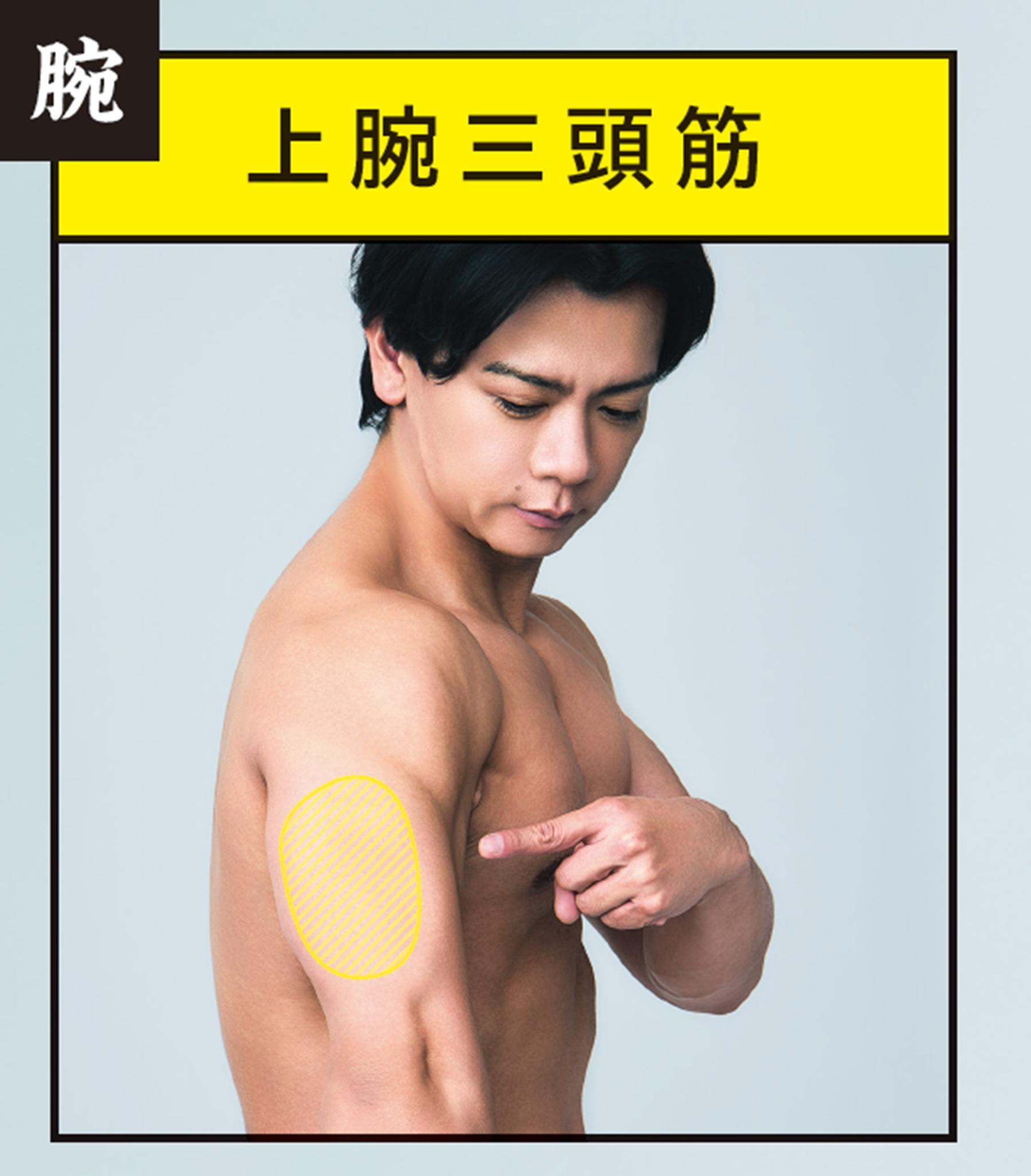 二の腕の後ろ側にある上腕三頭筋は、肘を伸ばす動作に使用される筋肉。「腕の筋肉の中で一番大きいため、代謝を上げるという意味では“痩せ”の近道に。日常動作ではあまり使わないことから衰えやすく、意識的に鍛える必要があります」