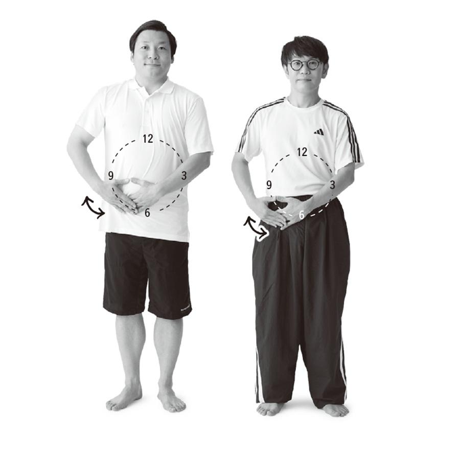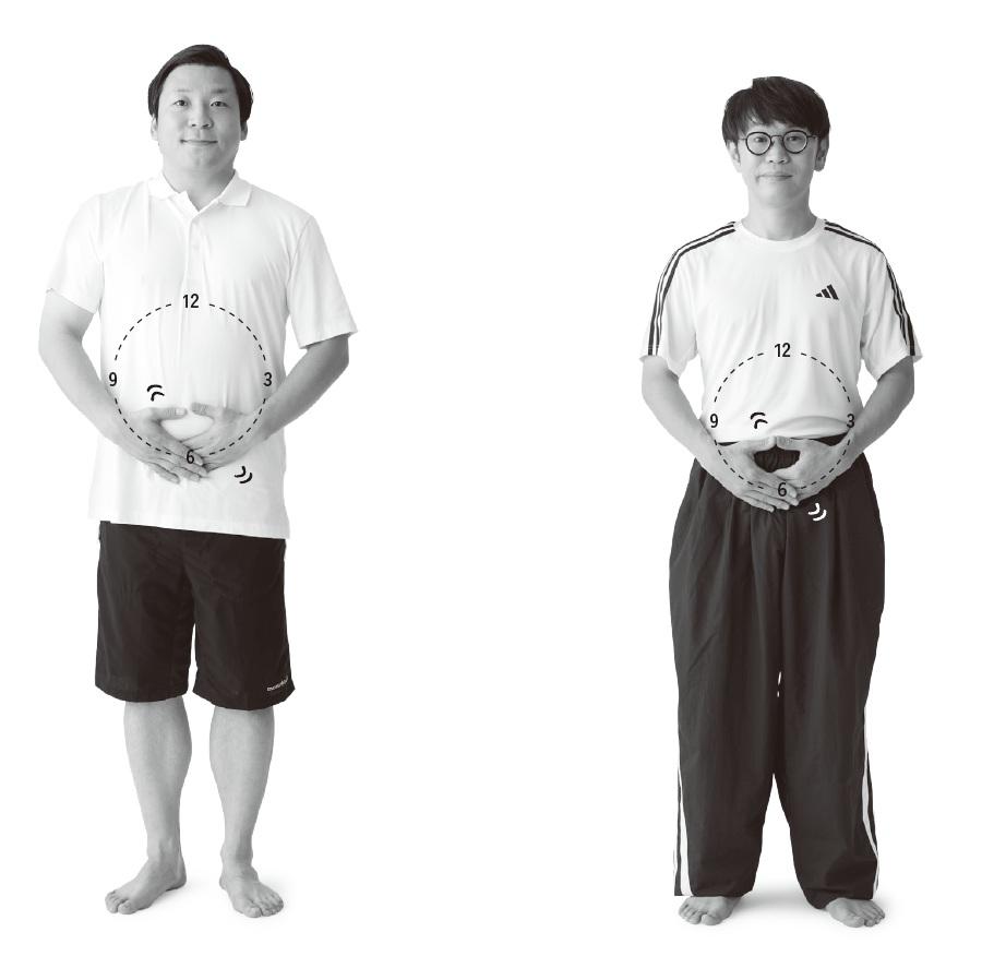 お腹に描いた大きな時計と小さな時計が不腸に隠れた根本原因を教えてくれる。