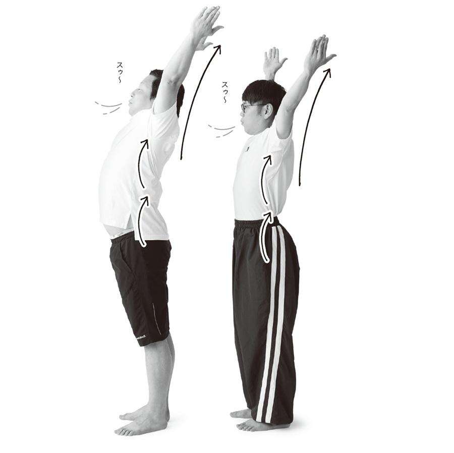 ちょんまげラーメンも陥っている、蠕動運動の停滞。そのまま放置すると“落下腸”になる恐れがあると小澤さん。「“落下腸”とは、腸の中に溜まった内容物の重さで、腸全体が下がってしまうこと。放っておくとぽっこりお腹や排泄トラブル、女性ならではの不調にもつながりかねません。そこで、どんなお腹の悩みがある方にもおすすめしたいのが、落ちた腸を上げて位置を整える呼吸法。仕事の合間のリフレッシュにもおすすめです」