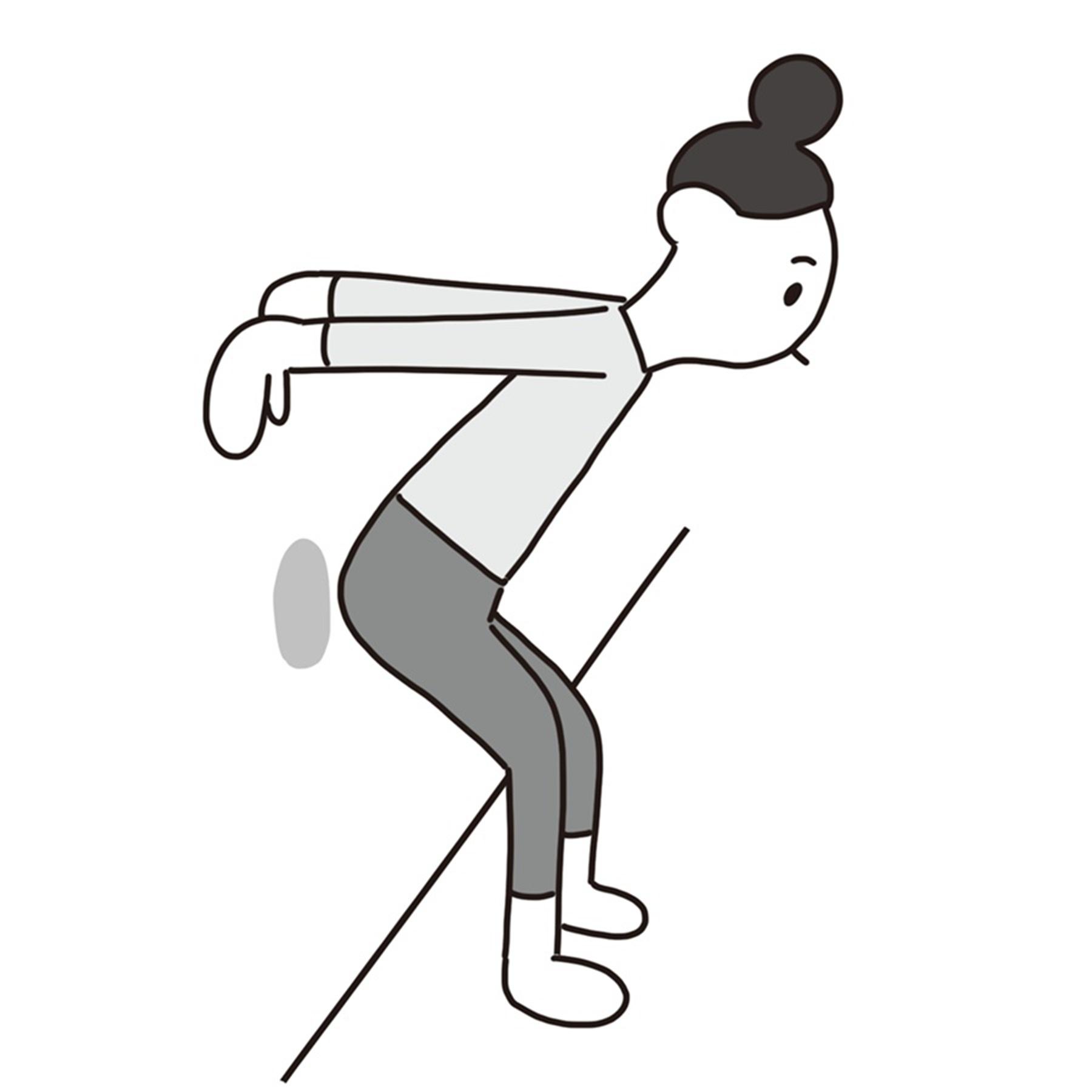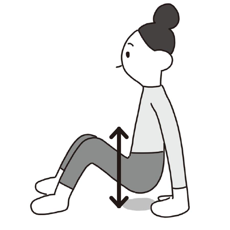 1、「お尻浮かし」の2の体勢になり、もう少しお尻を上げる。