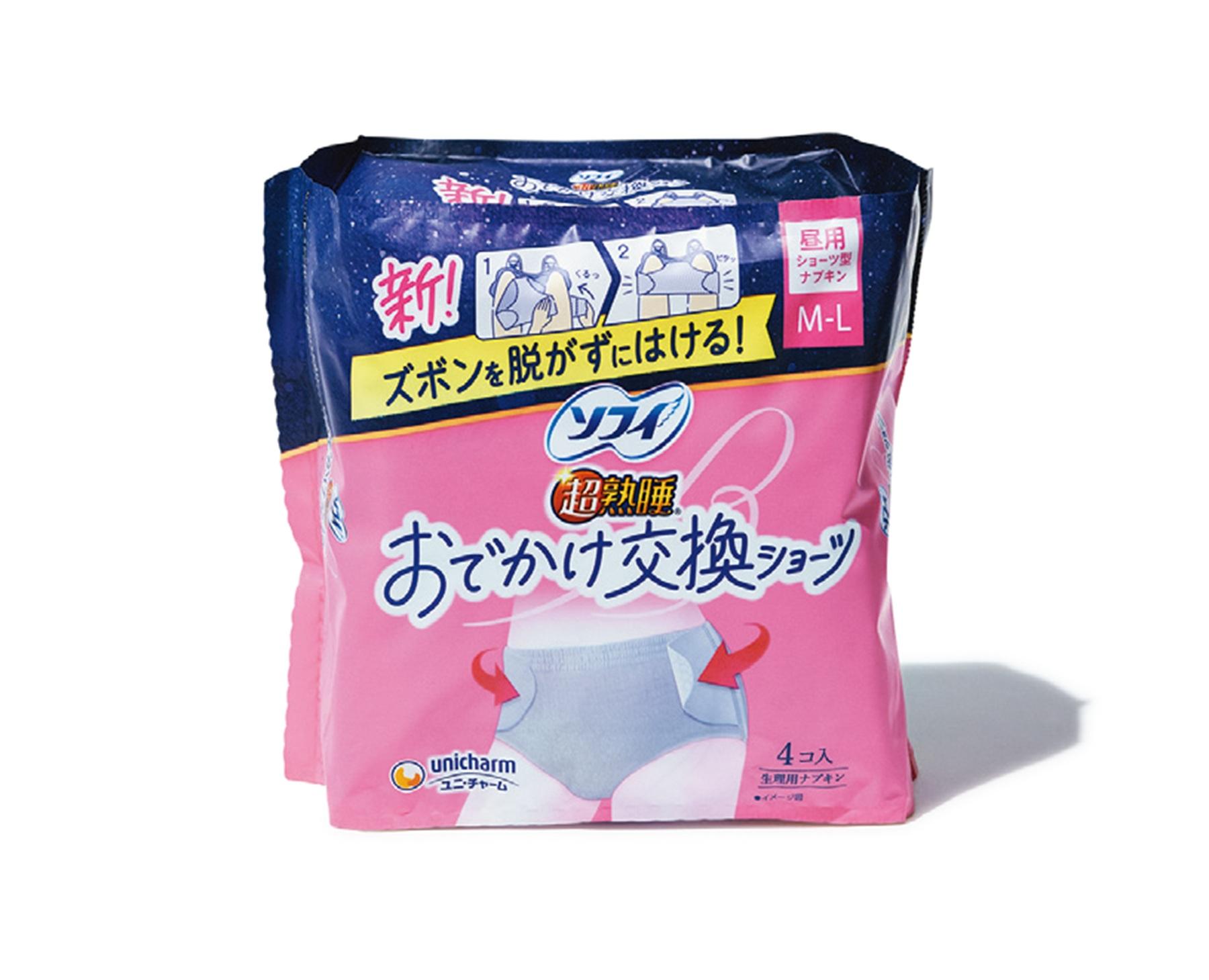 ソフィ「おでかけ交換ショーツ」4個入り¥682*編集部調べ(ユニ・チャームお客様相談センター TEL. 0120-423-001)