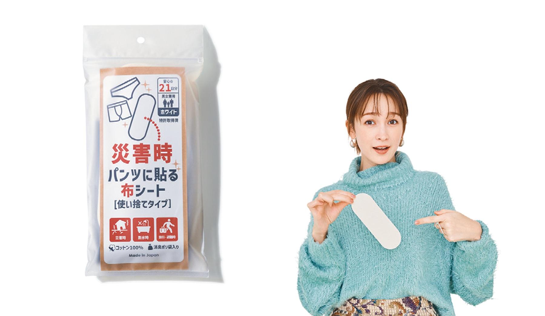 使いきりの紙製ブラ&ショーツセット。「防災において、まず初めに何を用意すればいいのかというお悩みがあると思うんですけど、とにかく下着は絶対ないと困る! これは防災バッグに入れても全然負担にならない軽さと薄さが魅力。一度試して気に入ったら、ぜひ備えの一つにしてみては」(木川さん)。ワンサイズながら伸縮性があり、M~LLと幅広い体型に対応。