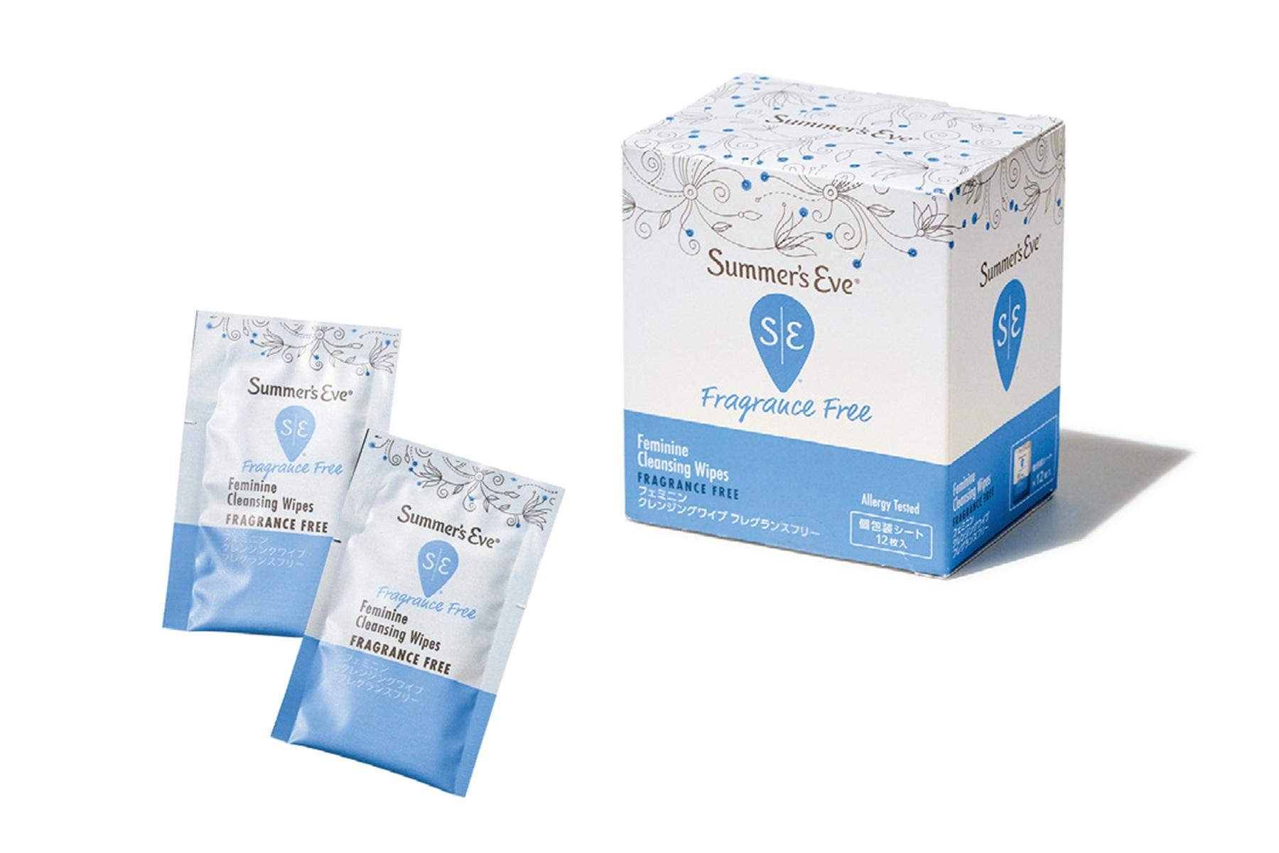 Summer’s Eve「フェミニンクレンジングワイプ フレグランスフリー」12枚入り¥704(ピルボックス)