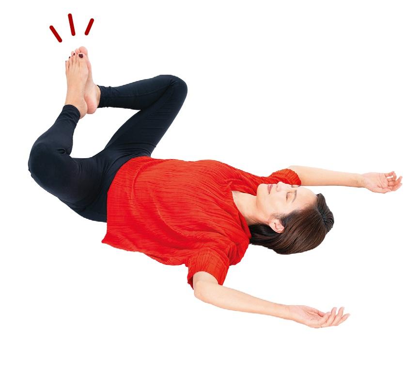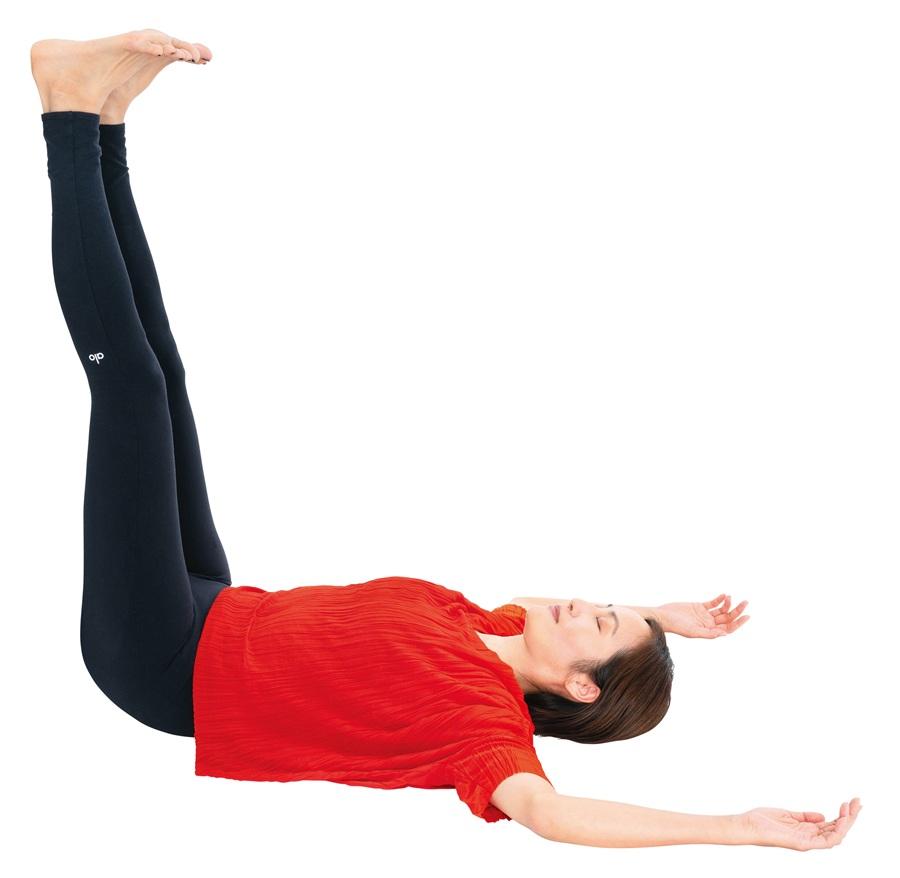 不要なストレスを毎日リセットすることで、ネガティブな感情が溜まりにくく、いい気が巡りやすい体に変わる。忙しい日中は頭に気が上りがち。横になって足を上げると血流がお腹に集中し、いらないストレスが流れて捨てやすくなり、全身の力みも抜ける。