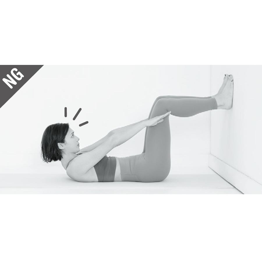 お腹全体を引き締めるならコレ。とくにお腹の正面の腹直筋が鍛えられ、縦に割るのも夢じゃない! 壁に足裏をつけることで力を入れやすくなり、効果増。