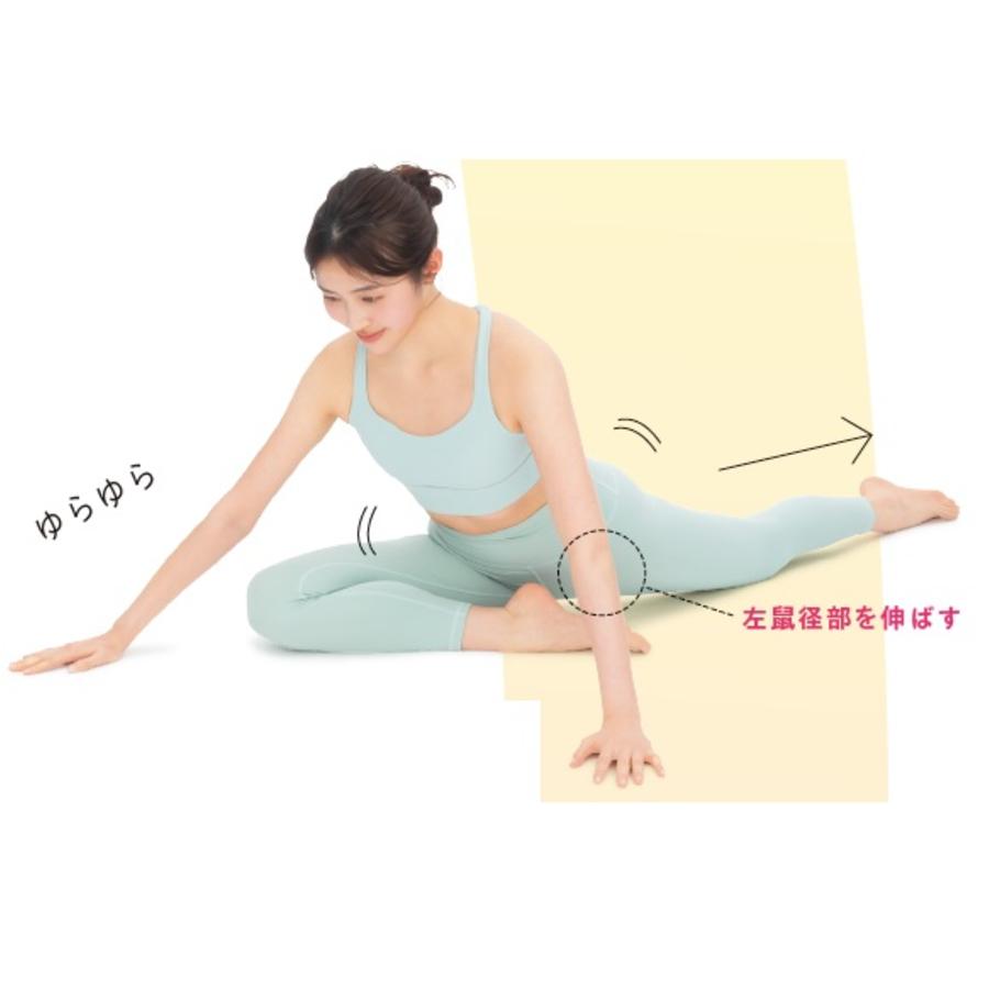 あぐらをかくようにひざを曲げて座り、右足裏の「湧泉」のツボ(足裏の中央より少し上)に左かかとを乗せる。手で支えながらお尻を10cmほど浮かせて体を前後にゆする。反対側も同様に行う。