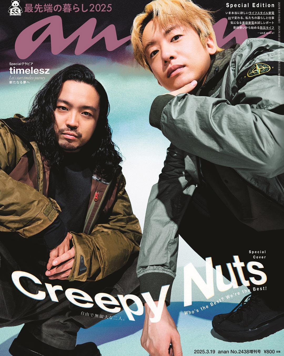 今回の特集は、anan恒例、新生活に向けて年々進化している暮らしに便利な最新家電、サービス、ツールを紹介する「最先端の暮らし」。その表紙に、2025年2月15日に新メンバーを発表し、8人となった新体制のtimeleszが登場します。